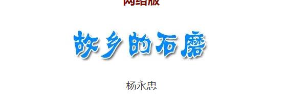 当读到四川南江作家杨永忠老师一篇名为(故乡的石磨)这篇文章让感受到满满的故乡情怀。