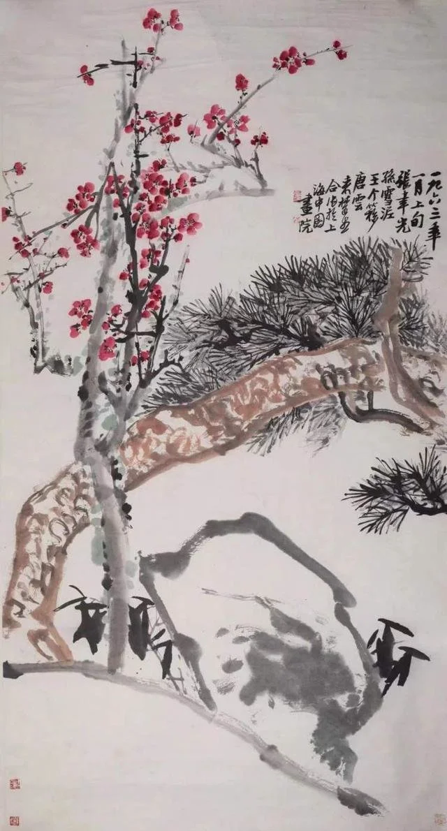 张聿光、孙雪泥、王个簃、唐云、来楚生 《三友图》,1963年