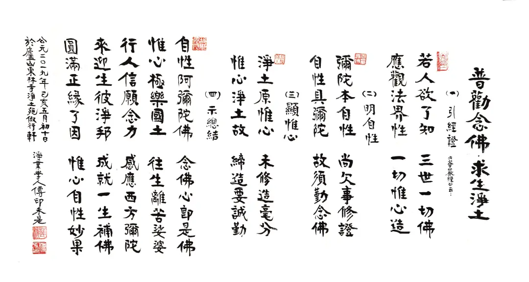 2019年,传印长老所书《普劝念佛·求生净土》(笔者供图)
